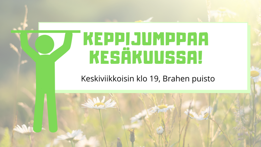 Keppijumppaa keskiviikkoiltaisin kesäkuussa! Ohjaajana Niina Ovaskainen, jumppapaikkana toimii Brahenpuisto.